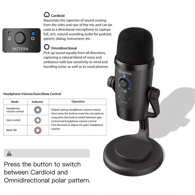 What makes this microphone truly special is its versatility. Whether you’re recording commentary, hosting a live stream, joining an online meeting, or capturing a podcast, the selectable cardioid and omnidirectional audio patterns let you tailor your sound to any environment. Need real-time monitoring? The built-in 3.5 mm headphone jack lets you hear everything exactly as your audience will.