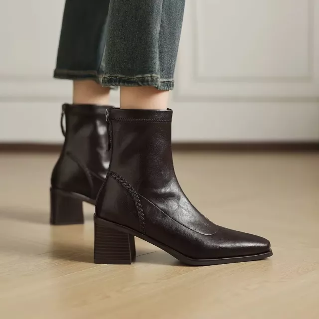 Featuring a square toe and a 6.5 cm (2.55 in) square heel, these ankle boots deliver stability and sophistication in one. The soft microfiber upper and lining feel luxurious against your skin, while the pigskin insole ensures lasting comfort with every wear. A smooth zip closure makes them easy to slip on and off, while the durable rubber outsole offers dependable traction on every surface. These boots sit perfectly above the ankle, complementing skinny jeans, skirts, or dresses effortlessly.