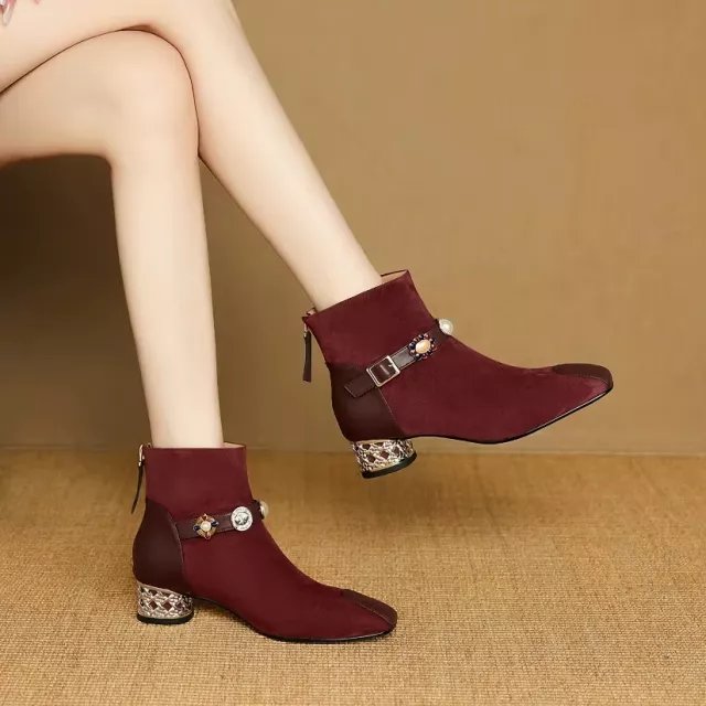 These Winter suede ankle boots bring together comfort, class, and confidence for the modern woman. Designed with soft genuine leather and smooth kid suede, they wrap your feet in warmth and sophistication. The square toe design adds a touch of contemporary flair, while the subtle buckle detail gives these boots a chic finish that complements any outfit—from casual denim to elegant dresses.
